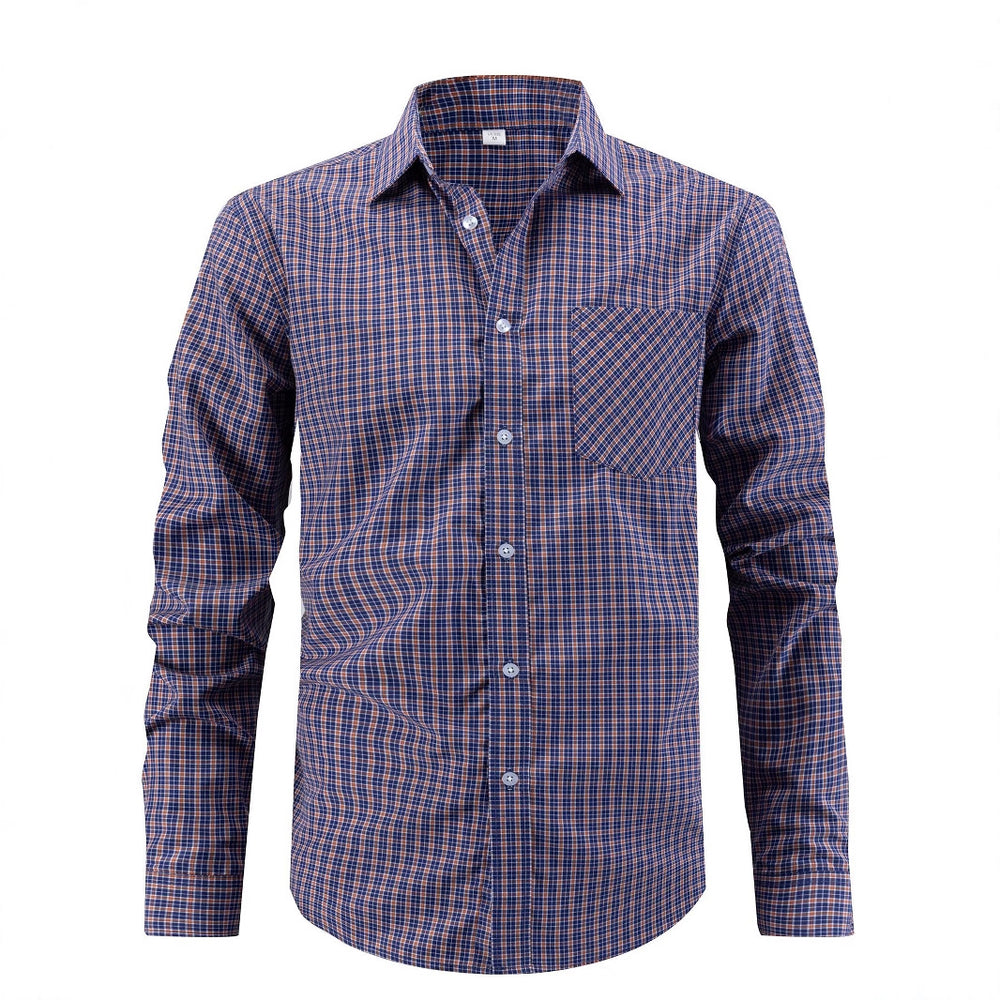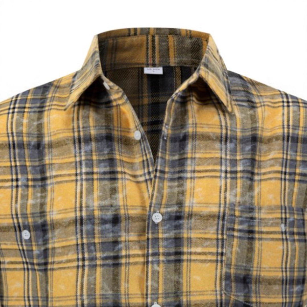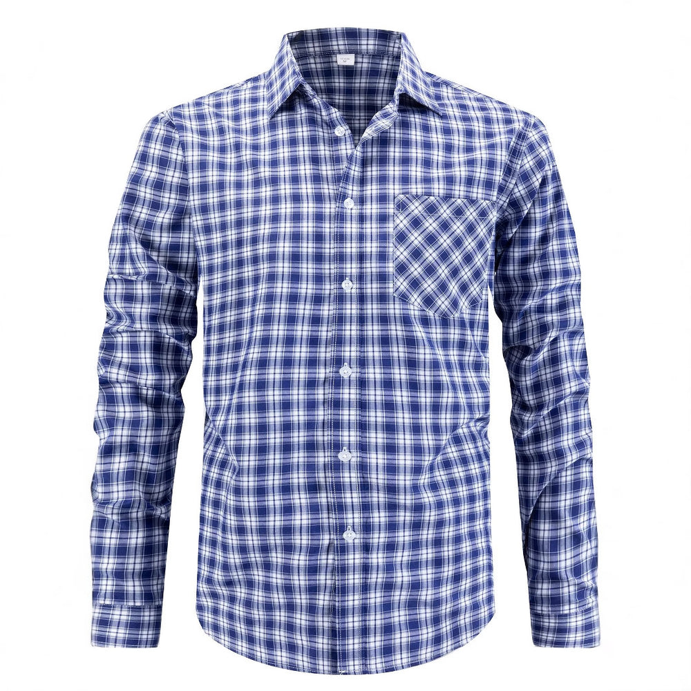 Herren kariertes Freizeithemd mit offenem Kragen und Brusttasche Aliams