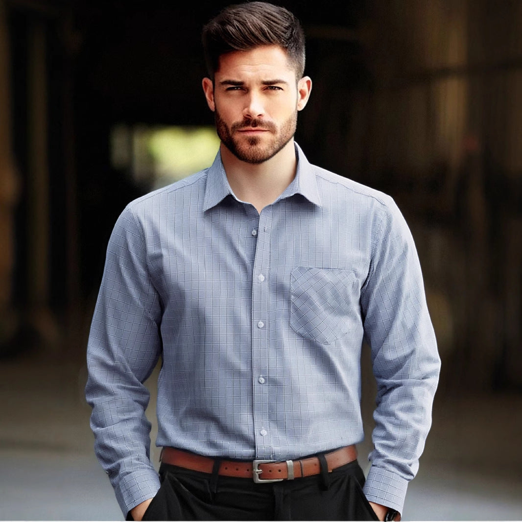 Herren kariertes Langarmhemd mit Brusttasche und feiner Struktur Aliams