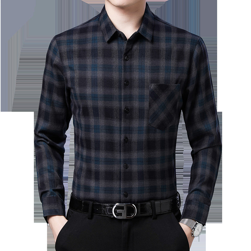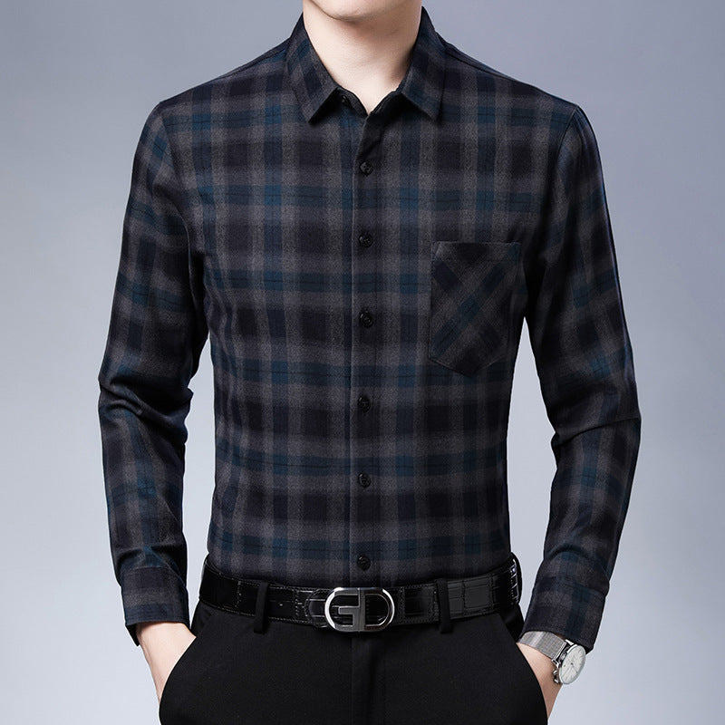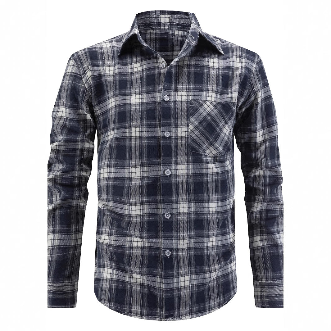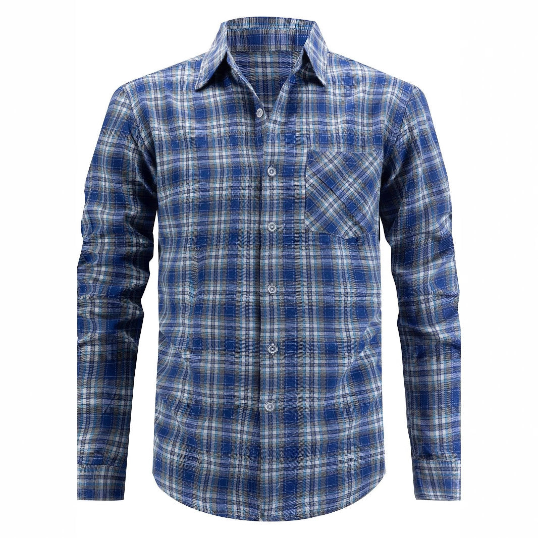 Herren kariertes Langarmhemd mit Brusttasche aus bequemer Baumwolle Aliams