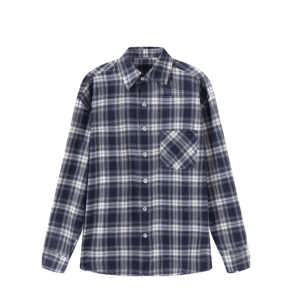 Herren kariertes Langarmhemd mit Brusttasche Aliams