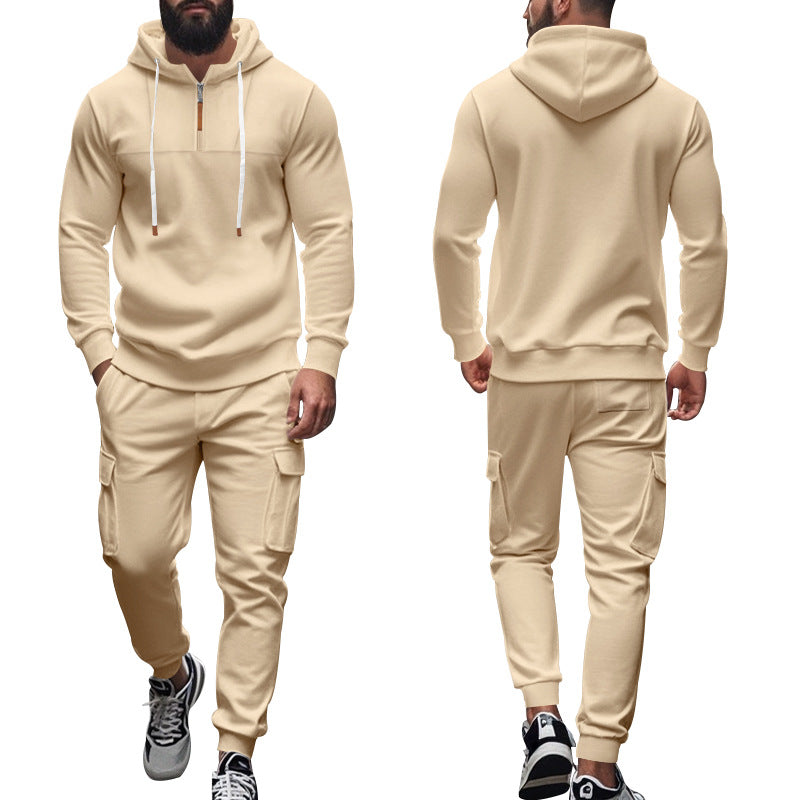 Herren komfortabler Hoodie- und Jogginganzug mit praktischen Cargo-Taschen und hohem Kragen Aliams