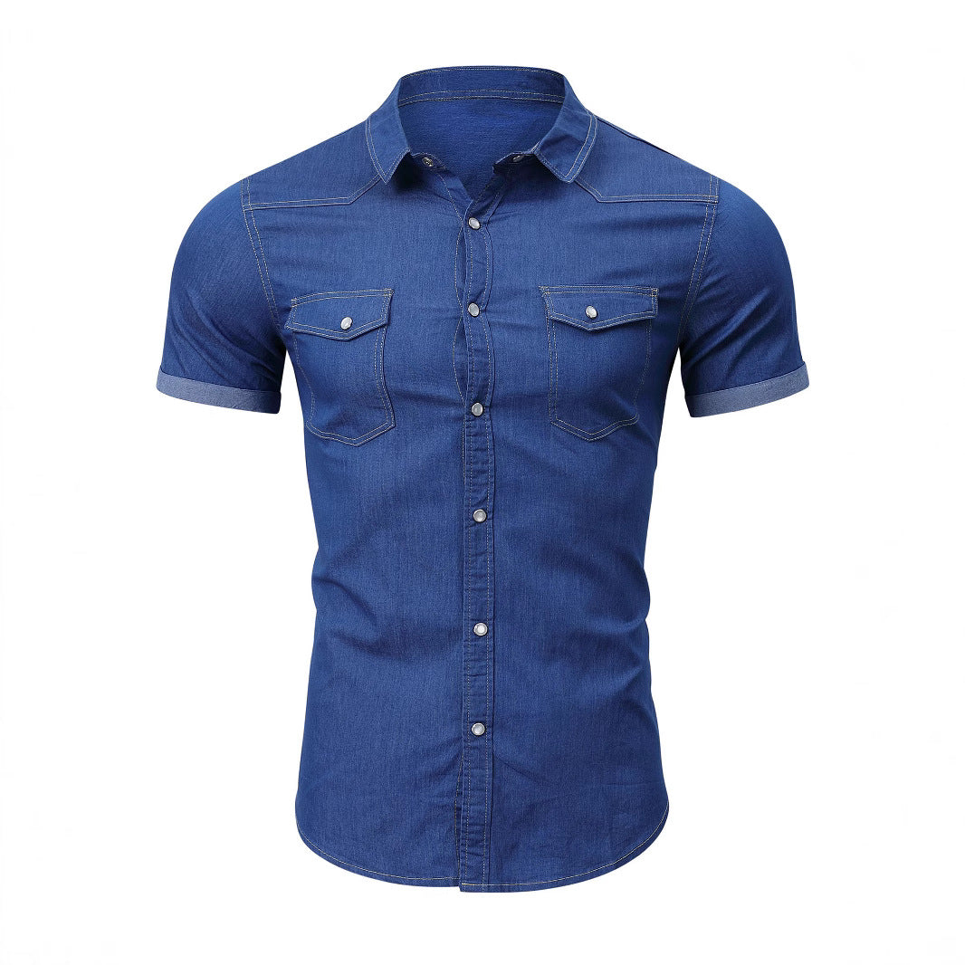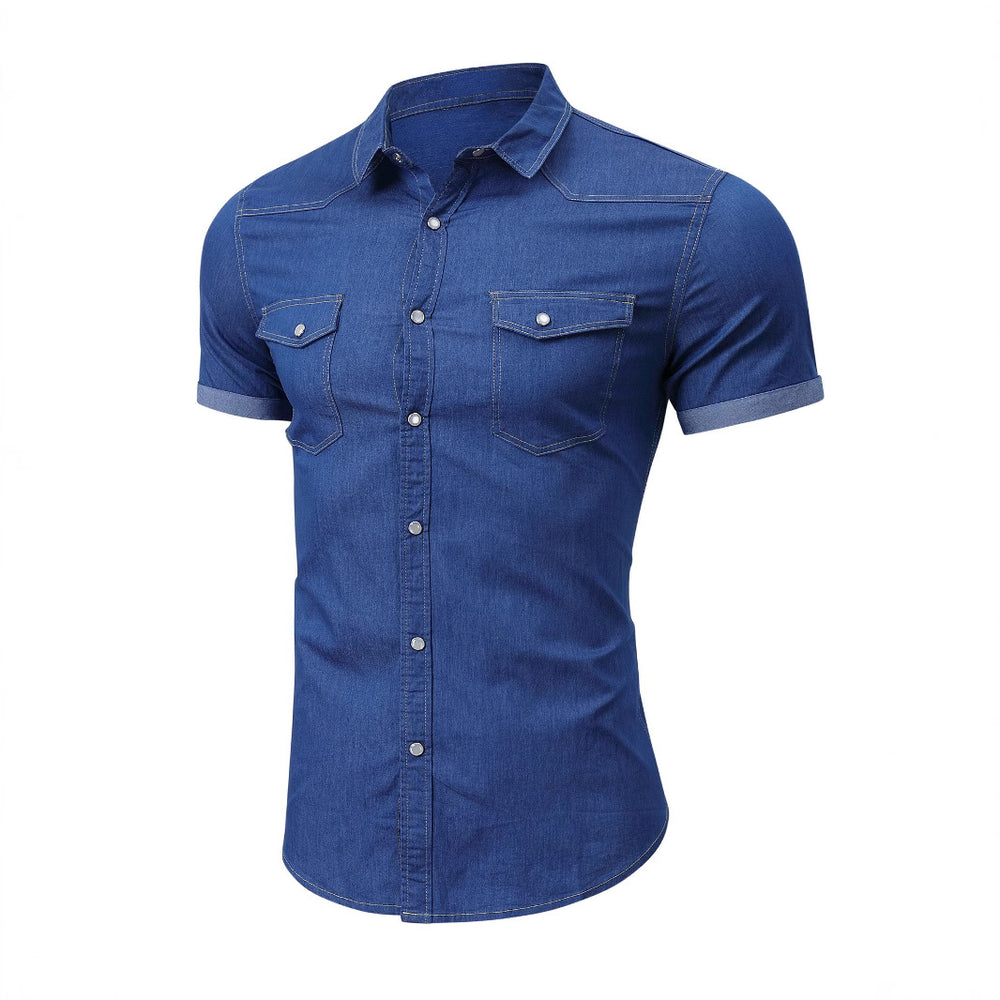 Herren Kurzarm Denimhemd mit doppelten Brusttaschen Aliams