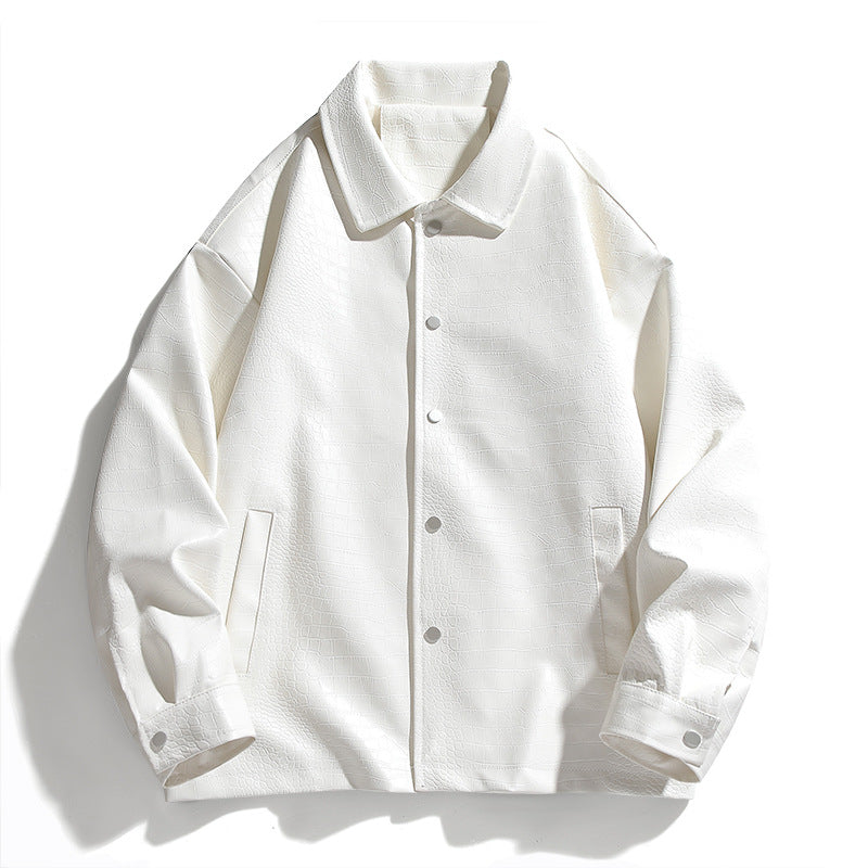 Herren Kunstlederjacke mit strukturiertem Design und seitlichen Reißverschlusstaschen Aliams