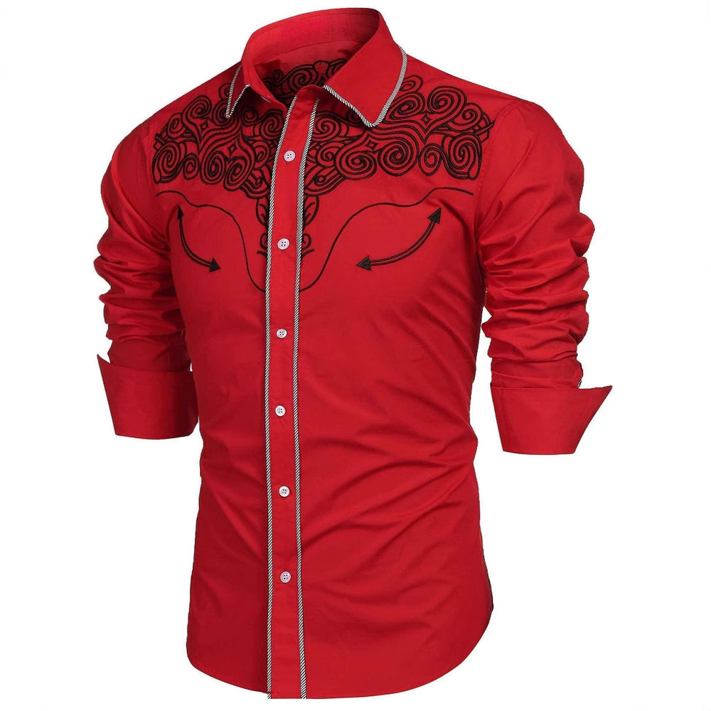 Herren Kunstvoll besticktes Langarmhemd Aliams