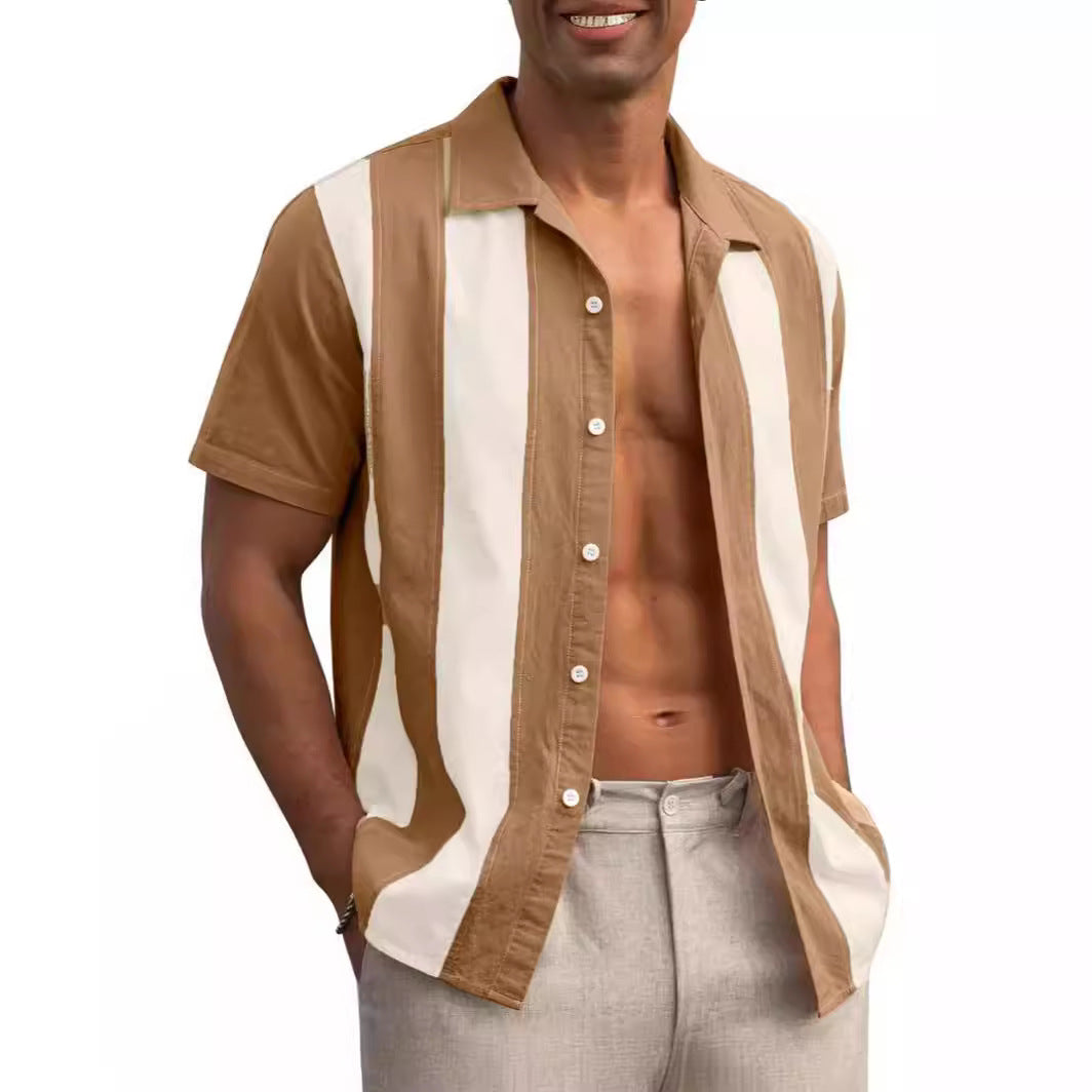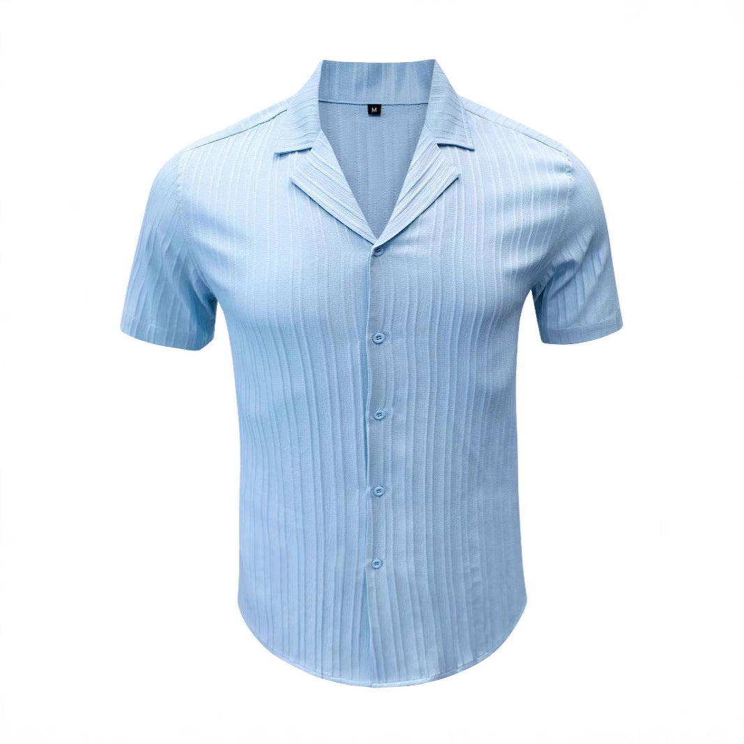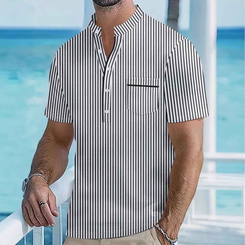 Herren Kurzarm Hemd im Sport-Streifenlook mit Knopfleiste Aliams