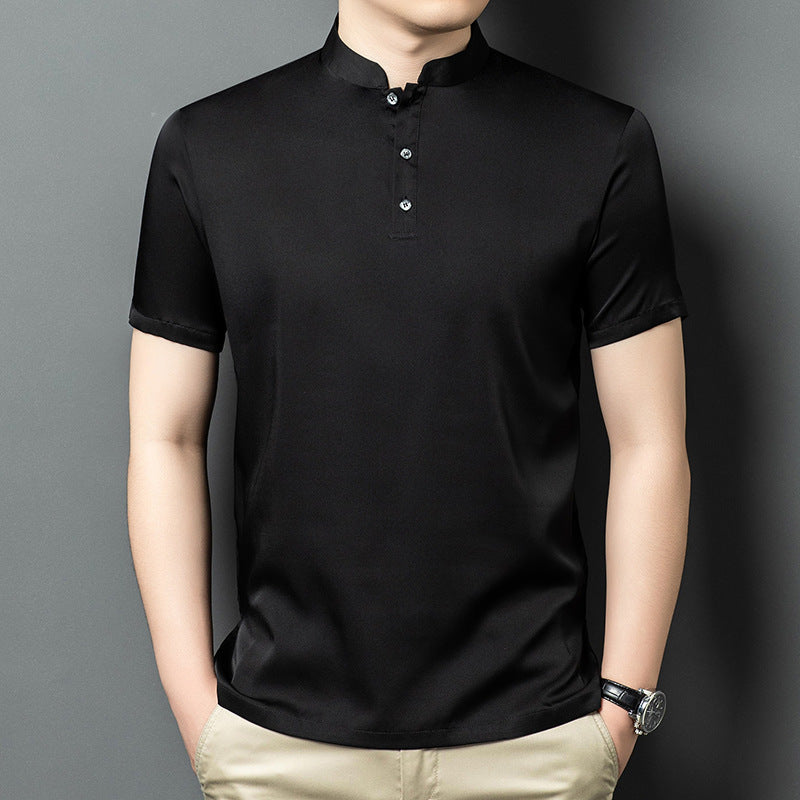 Herren Kurzarm Hemd im modernen Stehkragen-Stil Aliams