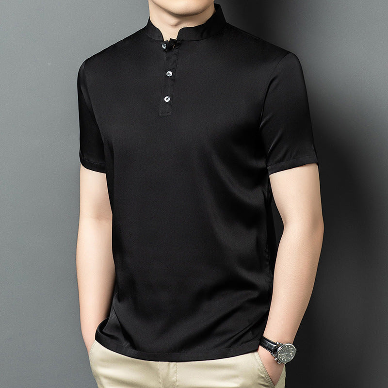Herren Kurzarm Freizeitshirt mit modernem Stehkragen und dynamischem Reißverschluss Aliams