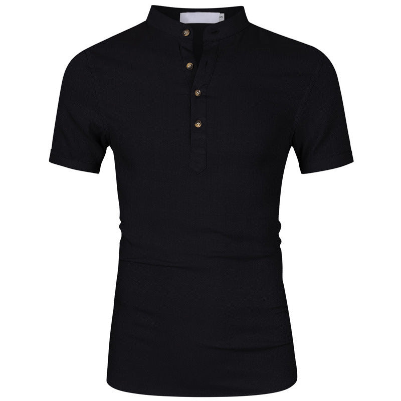 Herren Kurzarm Henley Hemd mit modernem Stehkragen aus leichtem Baumwollmaterial Aliams
