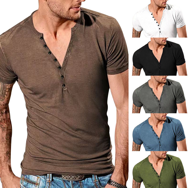 Herren Kurzarm Henley-T-Shirt mit modischem V-Ausschnitt und dekorativen Knöpfen Aliams