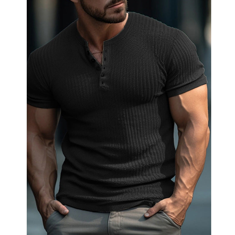 Herren Kurzarm Henley-T-Shirt mit strukturiertem Rippdesign Aliams