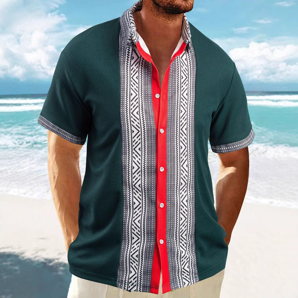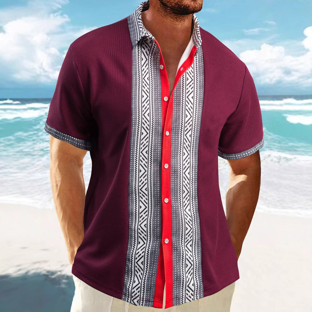 Herren Kurzarm-Hemd mit ethnischem Muster und kontrastierenden Details Aliams