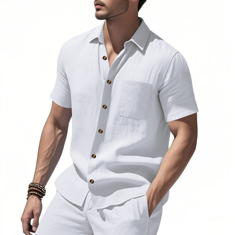 Herren Kurzarm-Hemd mit einer praktischen Brusttasche und modischem Knopfverschluss Aliams