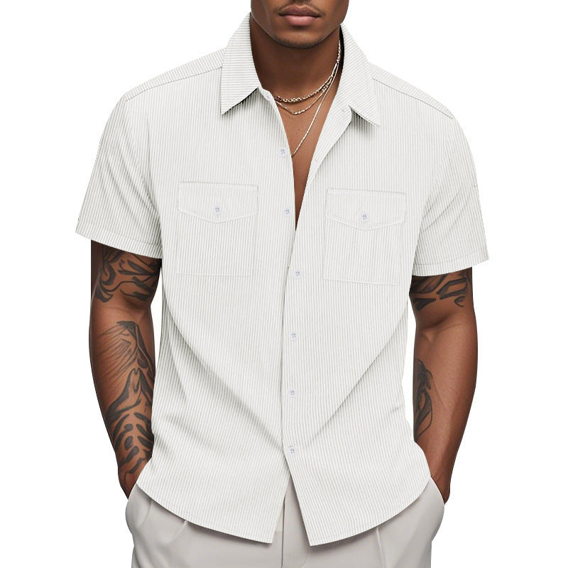 Herren Kurzarm-Hemd mit dezentem Längsstreifen und Brusttasche Aliams