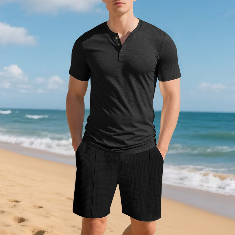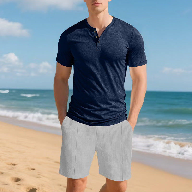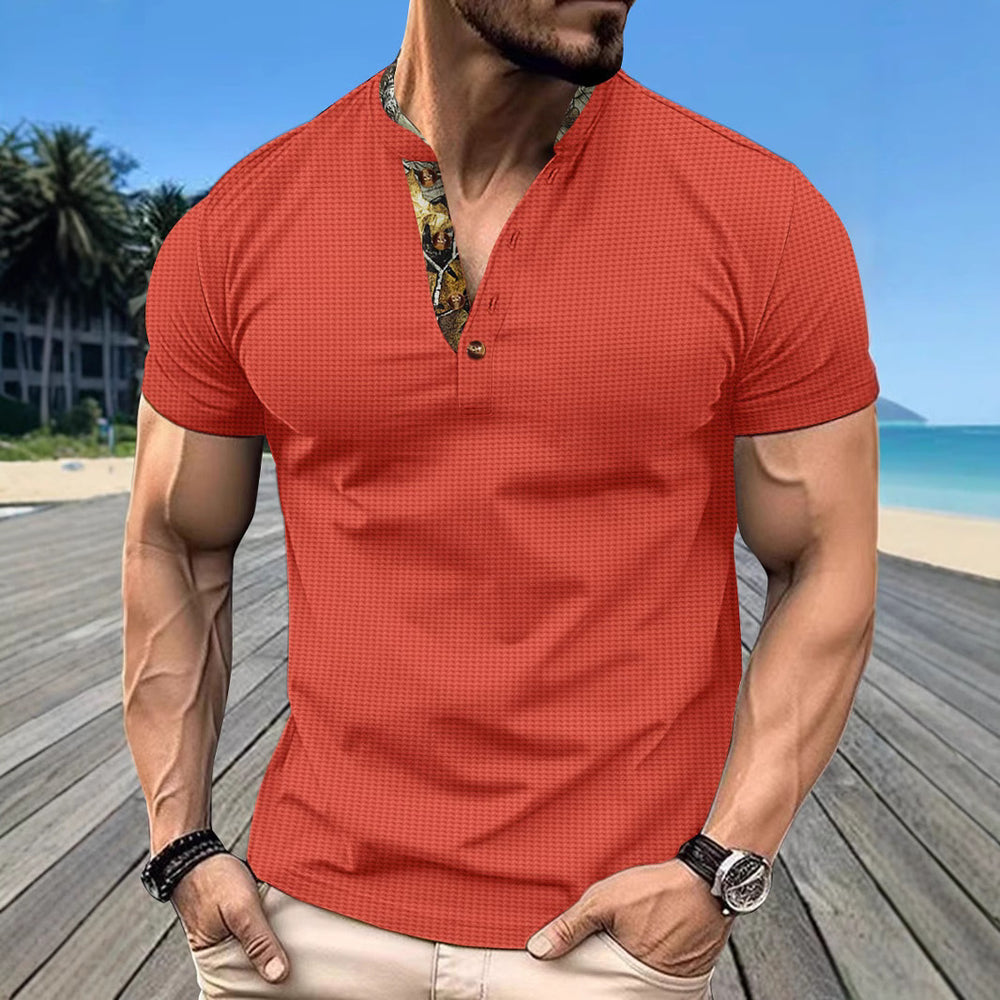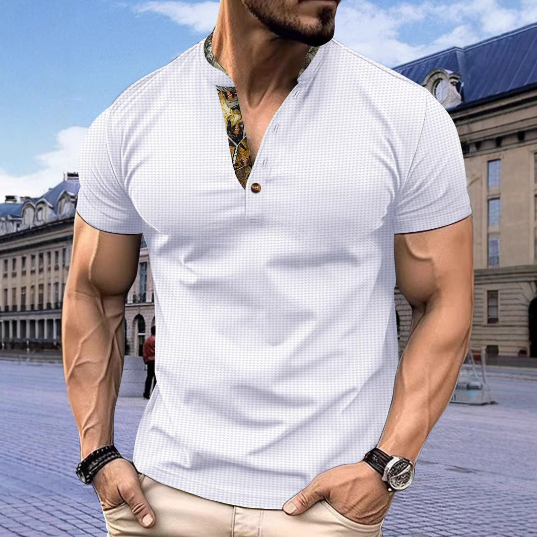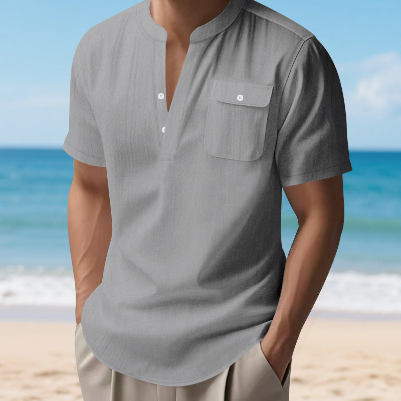 Herren Kurzarm-Hemd mit lässigem Stehkragen und feiner Struktur Aliams
