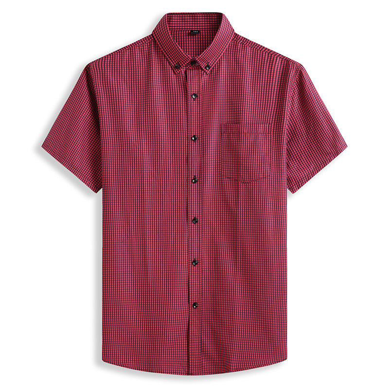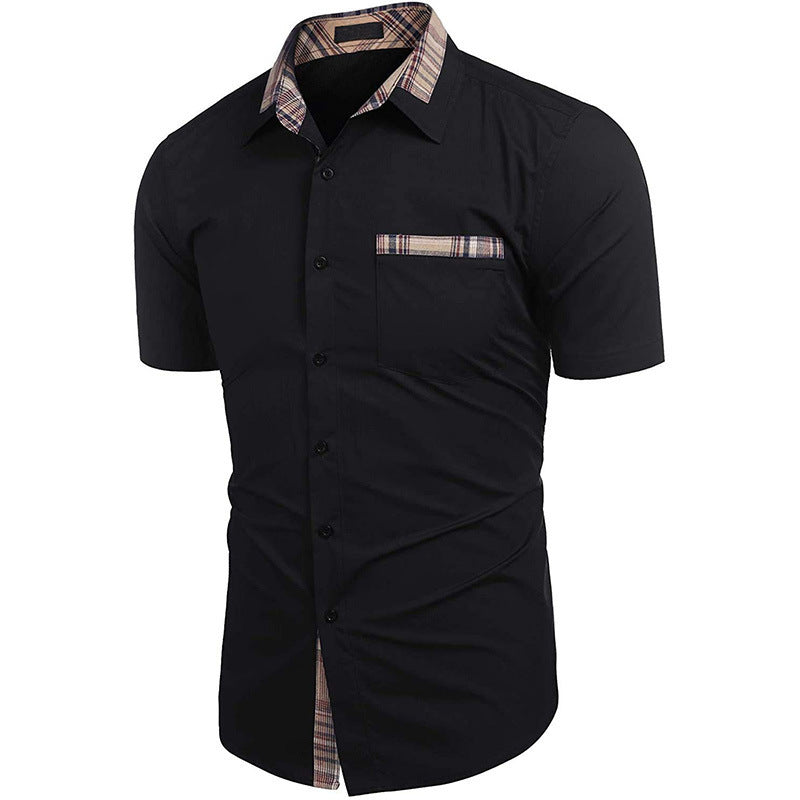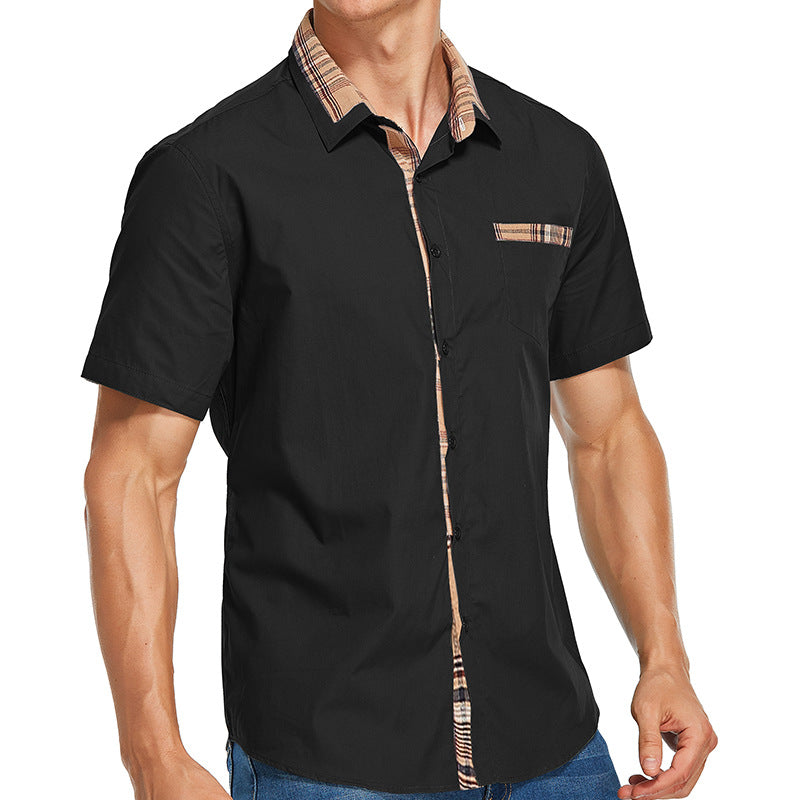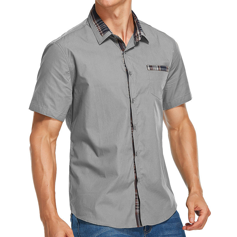 Herren Kurzarm-Hemd mit kariertem Kragen und Brusttasche Aliams