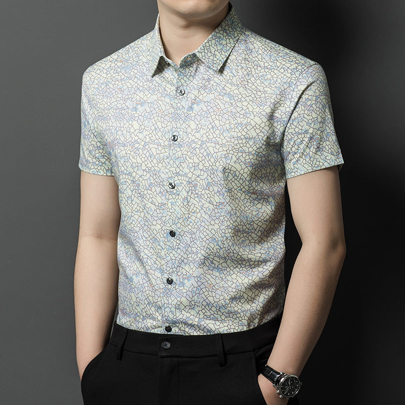 Herren Kurzarm-Hemd mit kunstvollem Design und hochwertigem Seidenmix Aliams