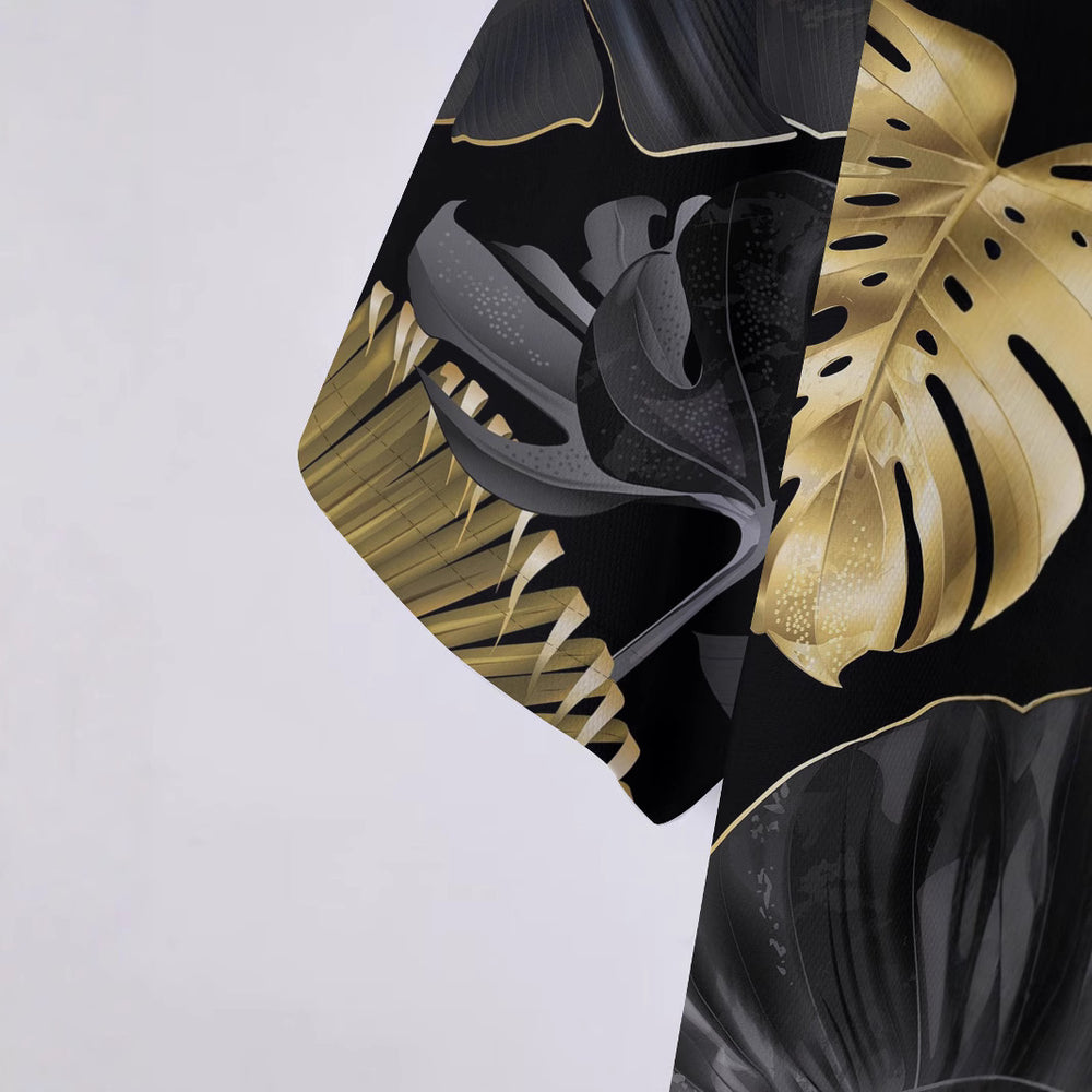 Herren Kurzarm-Hemd mit kreativem Blattdruck und modischem Schnitt Aliams