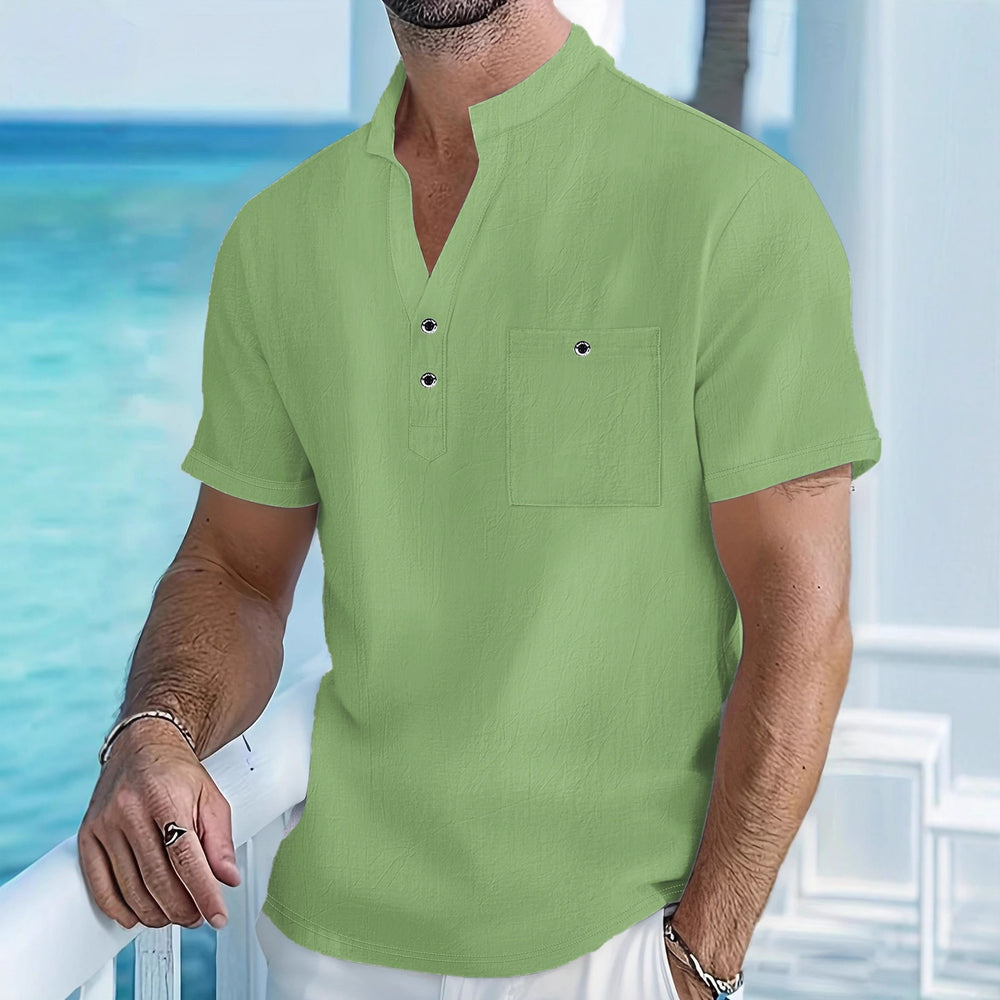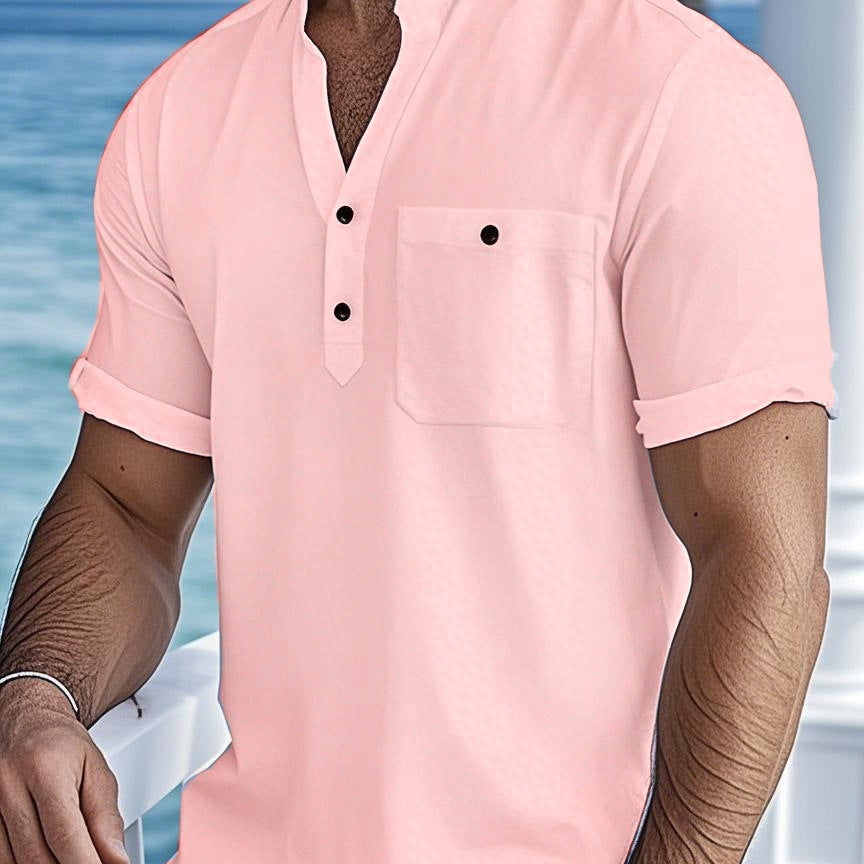 Herren Kurzarm-Hemd mit modischem Henley-Ausschnitt und Brusttasche Aliams