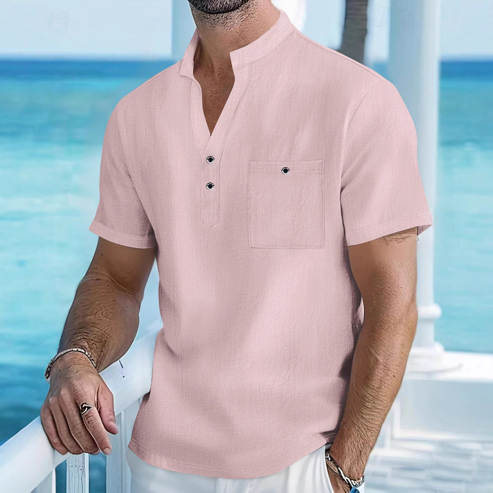 Herren Kurzarm-Hemd mit modischem Henley-Ausschnitt Aliams