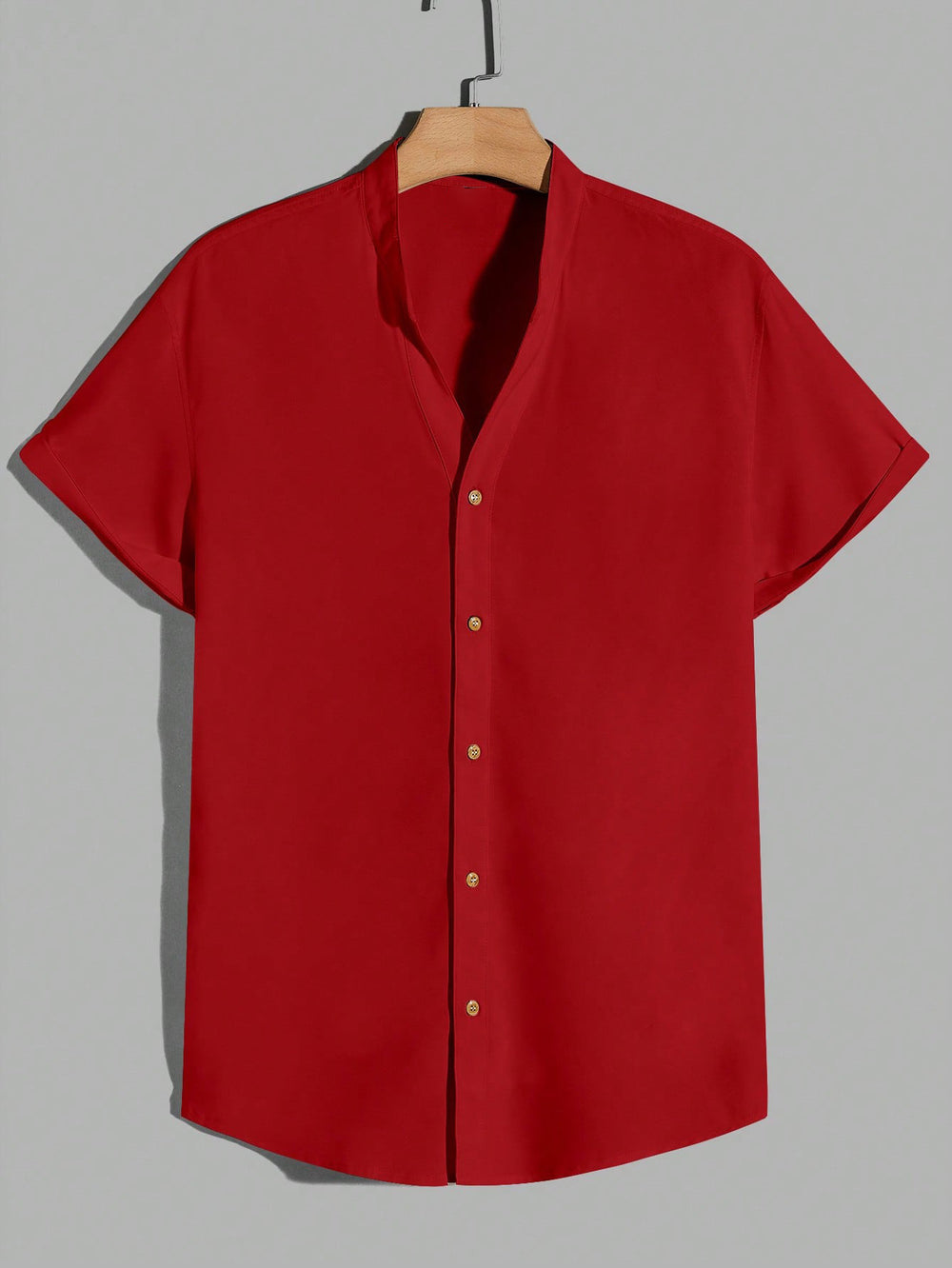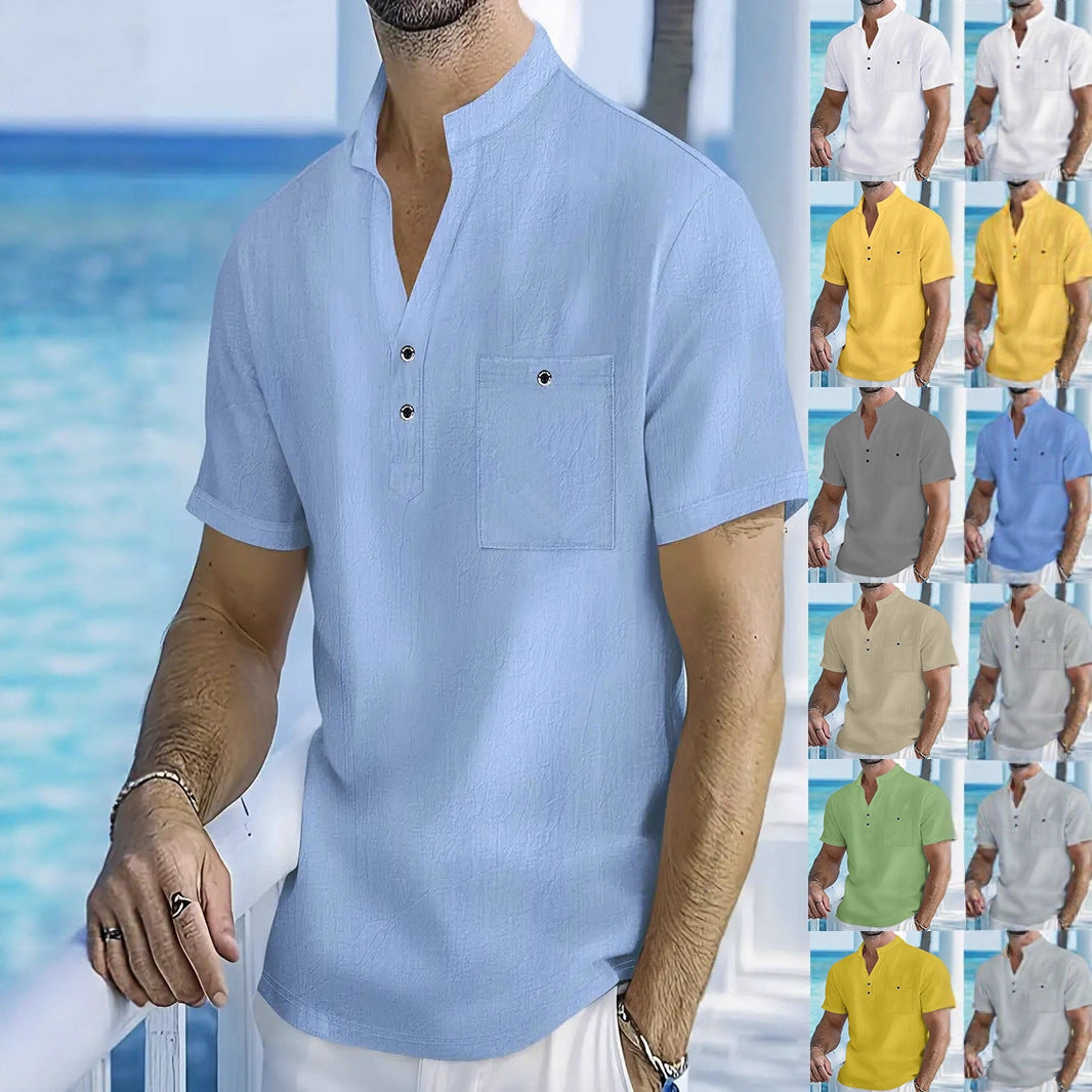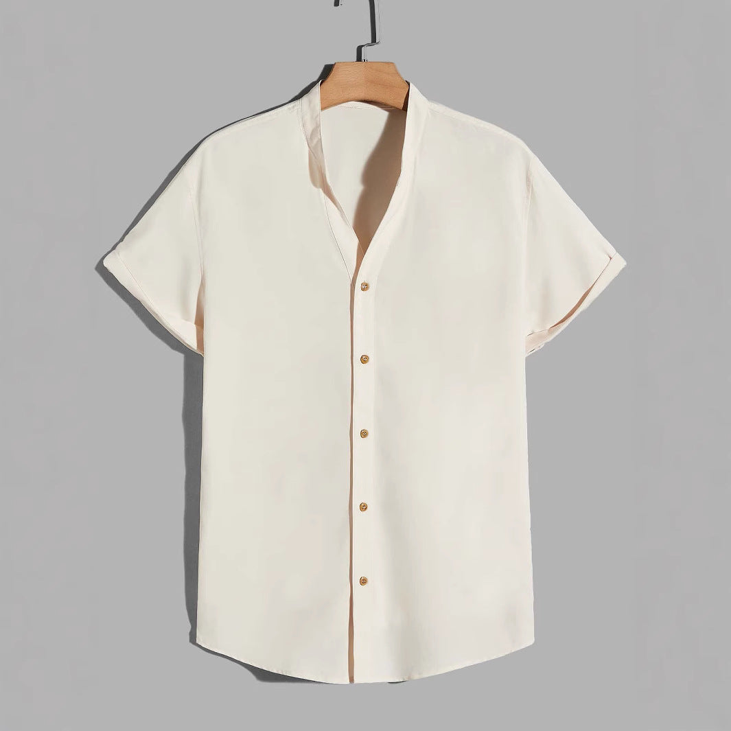 Herren Kurzarm-Hemd mit modischem Stehkragen und Knopfverschluss Aliams
