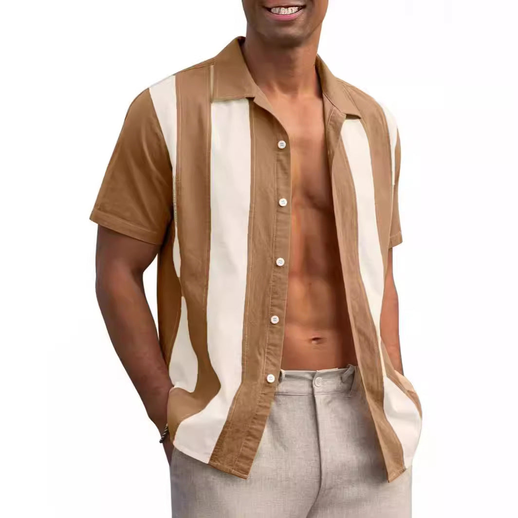 Herren Kurzarm-Hemd mit modernem Streifenmuster und funktionaler Knopfleiste Aliams