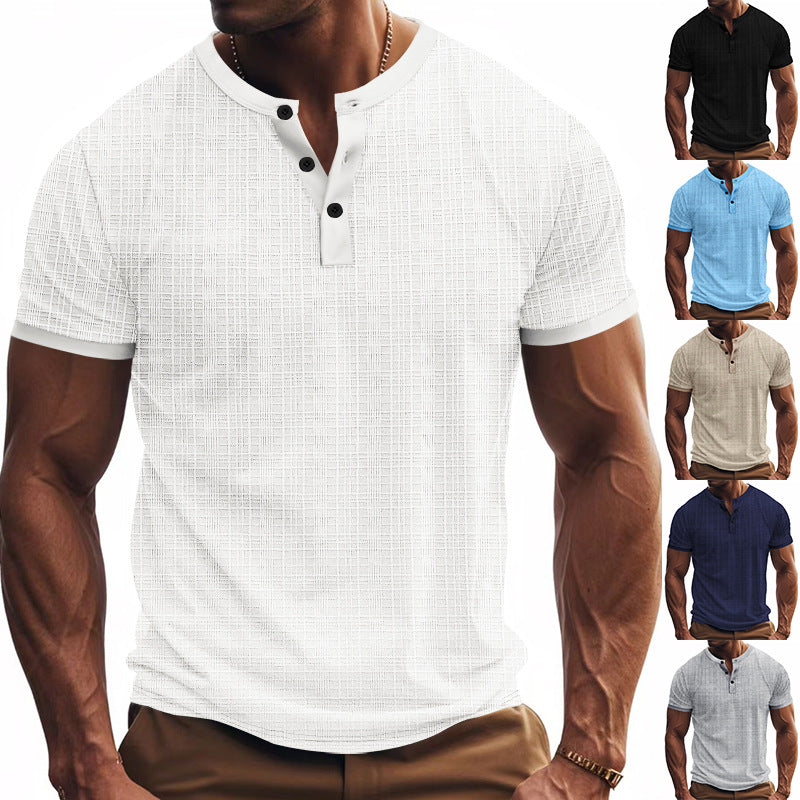 Herren Kurzarm-Henley-Shirt mit strukturiertem Design und modischem Knopfverschluss Aliams