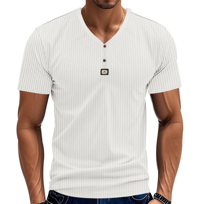 Herren Kurzarm-Henley-Shirt mit strukturiertem Streifenmuster und modischen Knöpfen Aliams