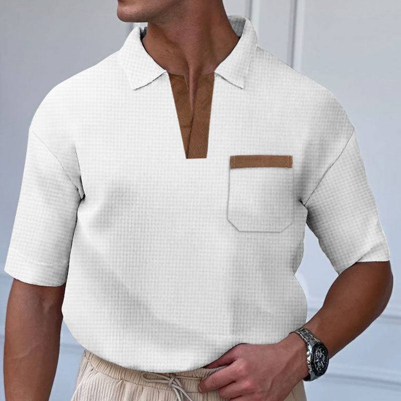 Herren Kurzarm-Polohemd mit strukturiertem Design und modernem V-Ausschnitt Aliams