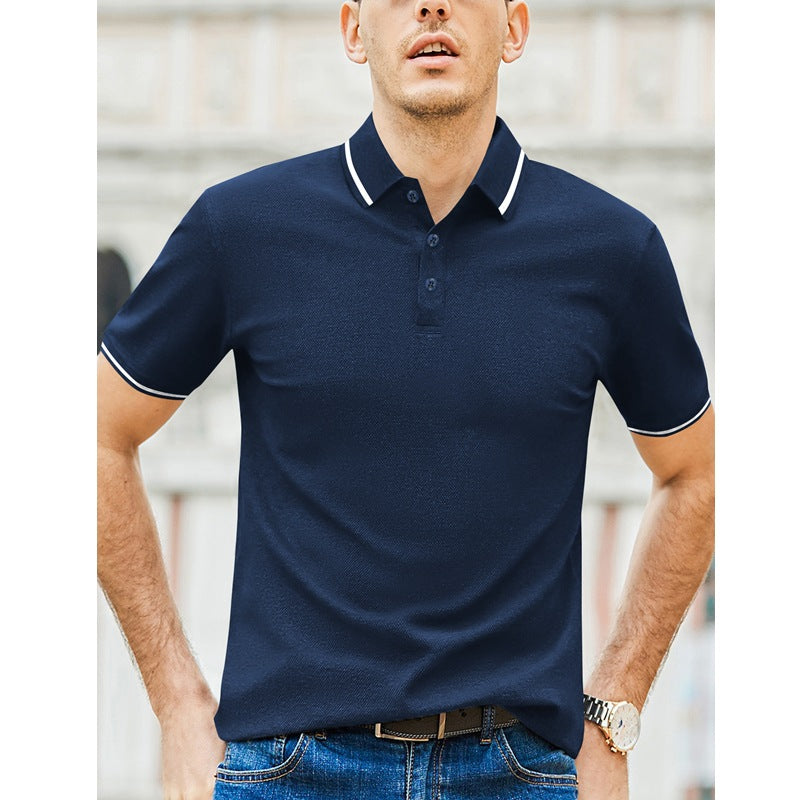 Herren Kurzarm-Polohemd mit modernem Bicolor-Kragen und atmungsaktiver Baumwollqualität Aliams