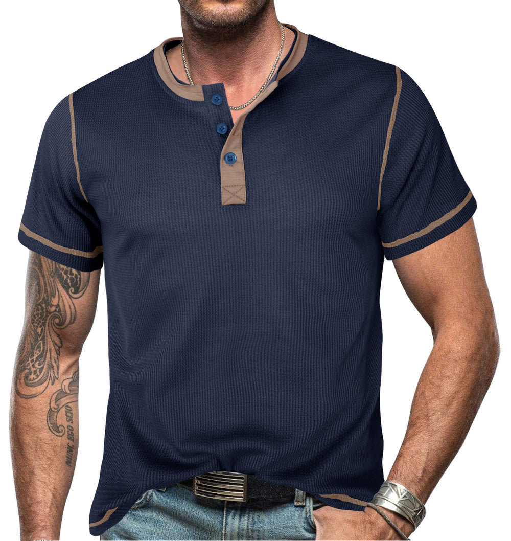 Herren kurzärmeliges Henley-T-Shirt mit strukturiertem Rippdesign und praktischem Knopfverschluss Aliams