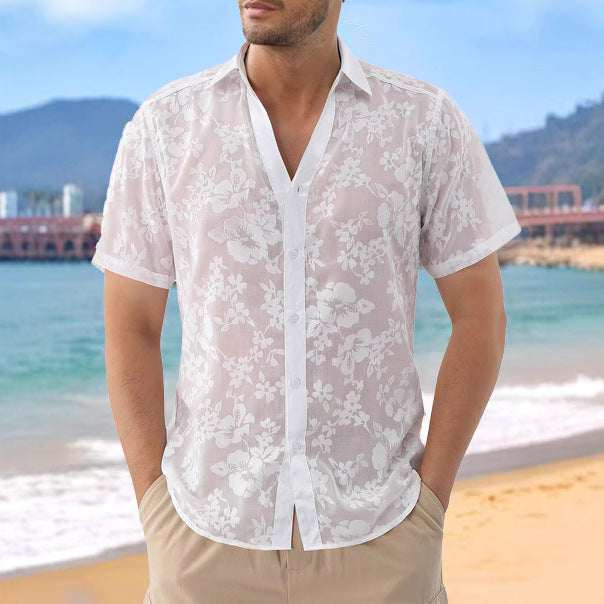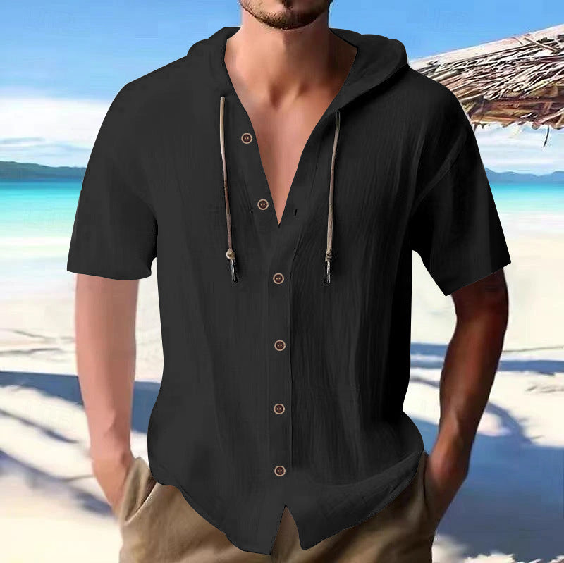 Herren kurzärmeliges Kapuzenhemd mit Knopfleiste und lässigem Schnitt Aliams