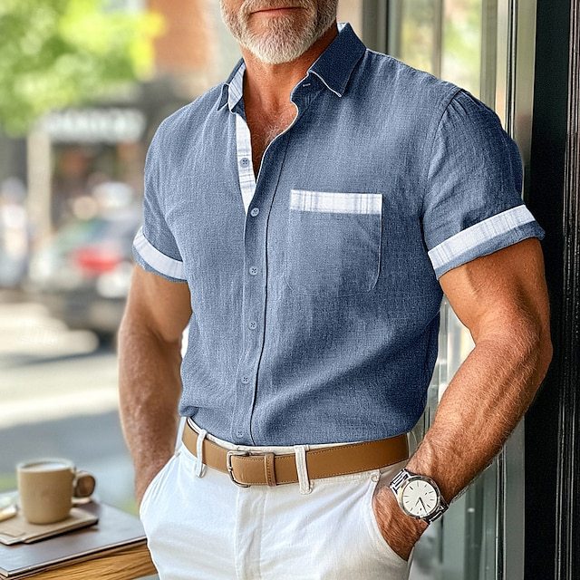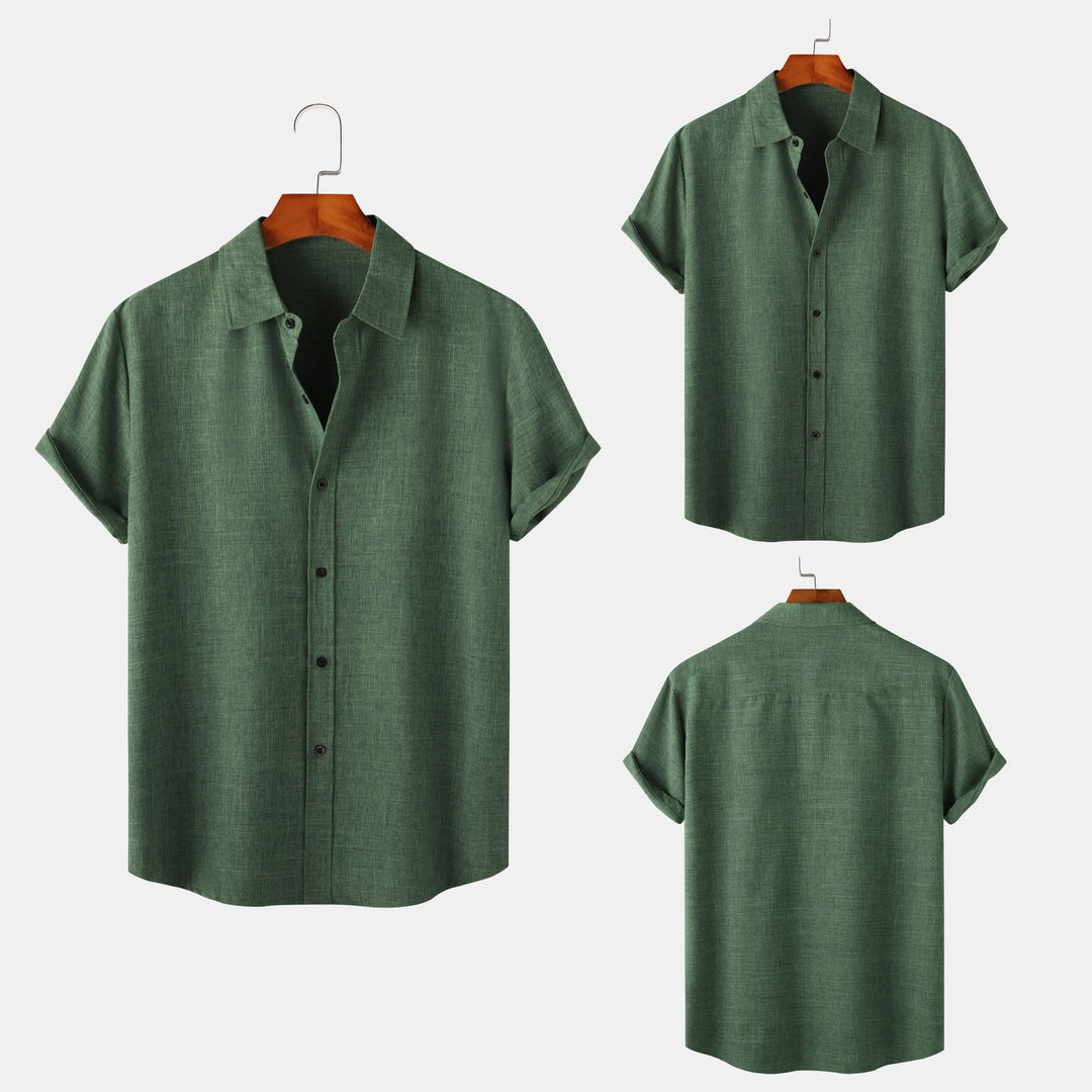 Herren Kurzarmhemd aus hochwertigem Leinen mit stilvollem Reverskragen Aliams