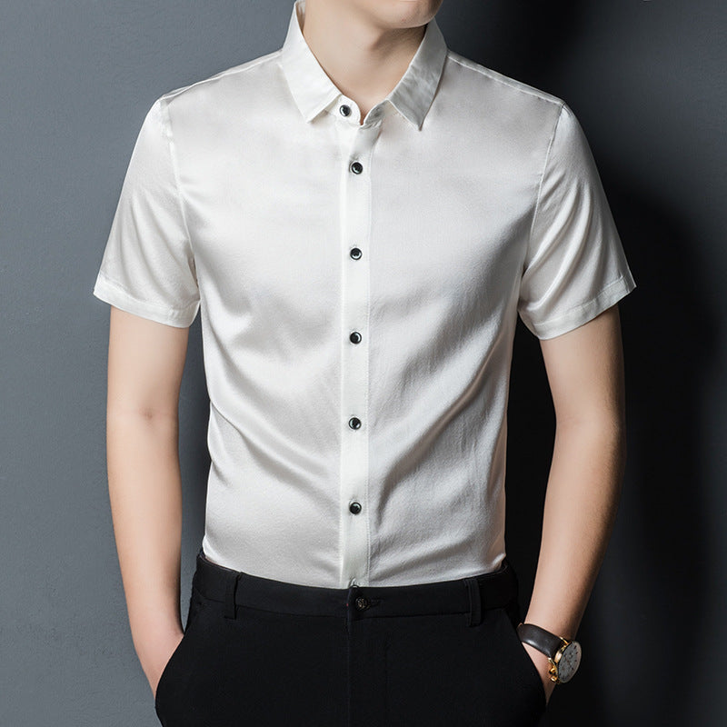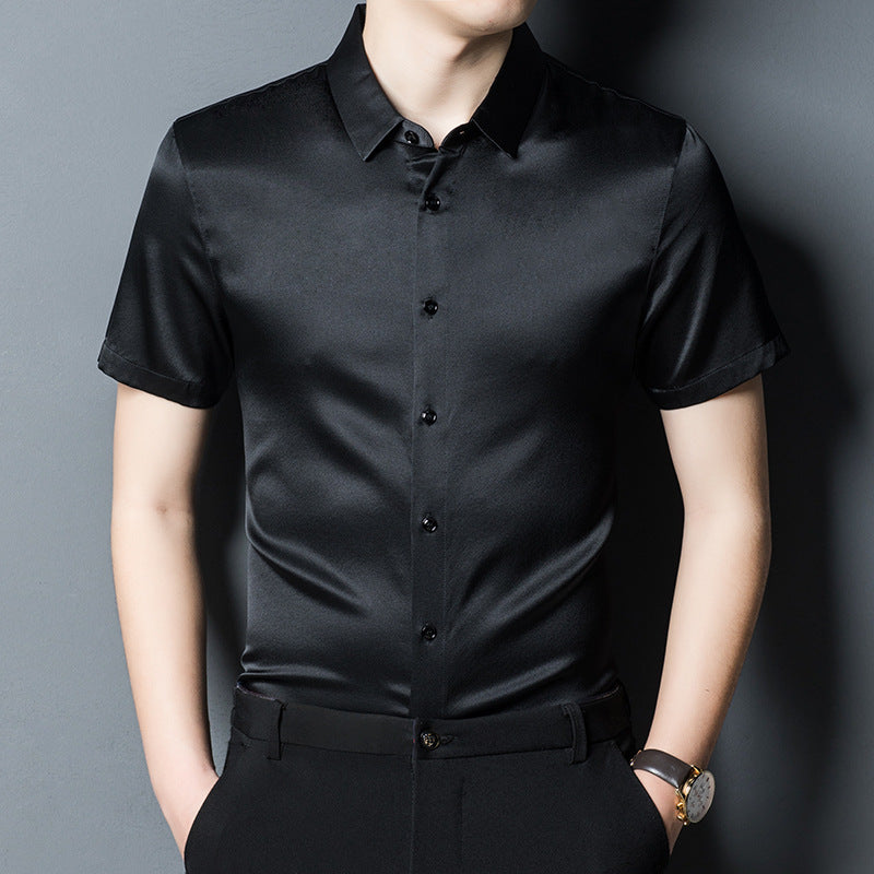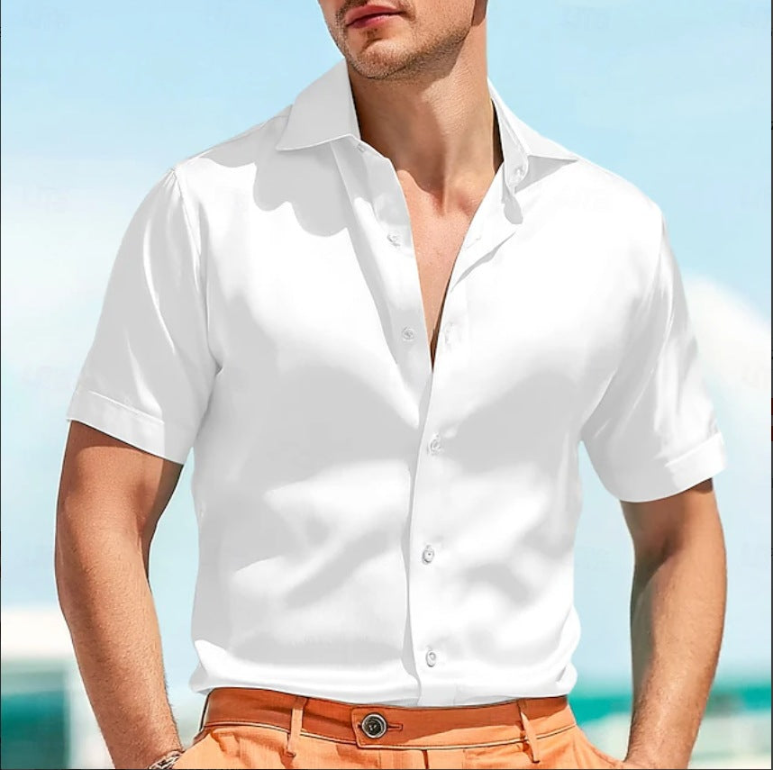 Herren Kurzarmhemd aus glänzendem Stoff mit modischem Schnitt Aliams