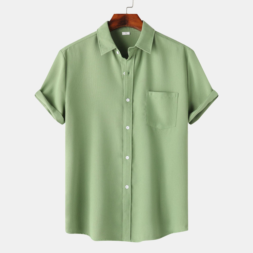 Herren Kurzarmhemd aus atmungsaktivem Strukturstoff mit eleganter Knopfleiste Aliams