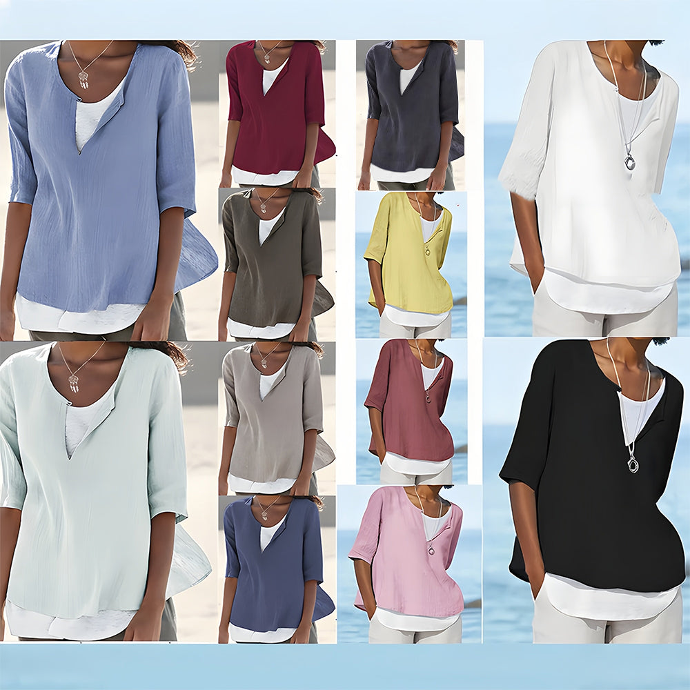 Aliams | Stilvolles, Halbärmeliges Damenoberteil Aus Baumwolle und Leinen