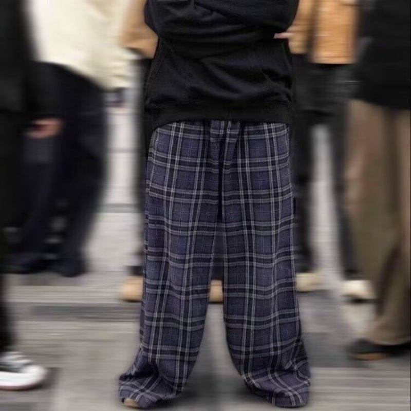 Damen bequeme Karohose mit elastischem Bund und weitem Bein Aliams