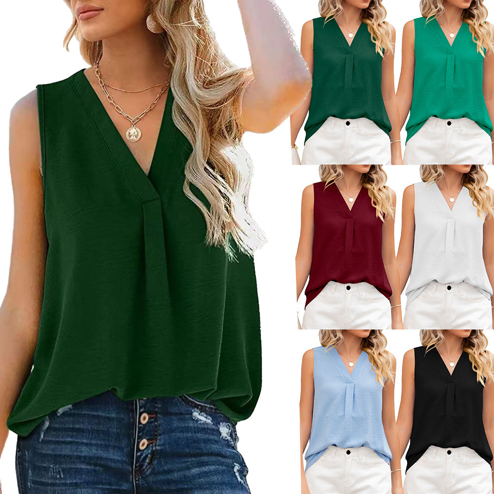 Damen Ärmelloses Blusenshirt mit Elegantem V-Ausschnitt und Dekorativer Faltenstruktur Aliams