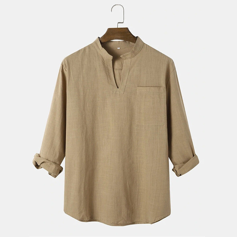 Damen Lässige Leinenbluse mit Umschlagbaren Ärmeln und Knopfdetails Aliams