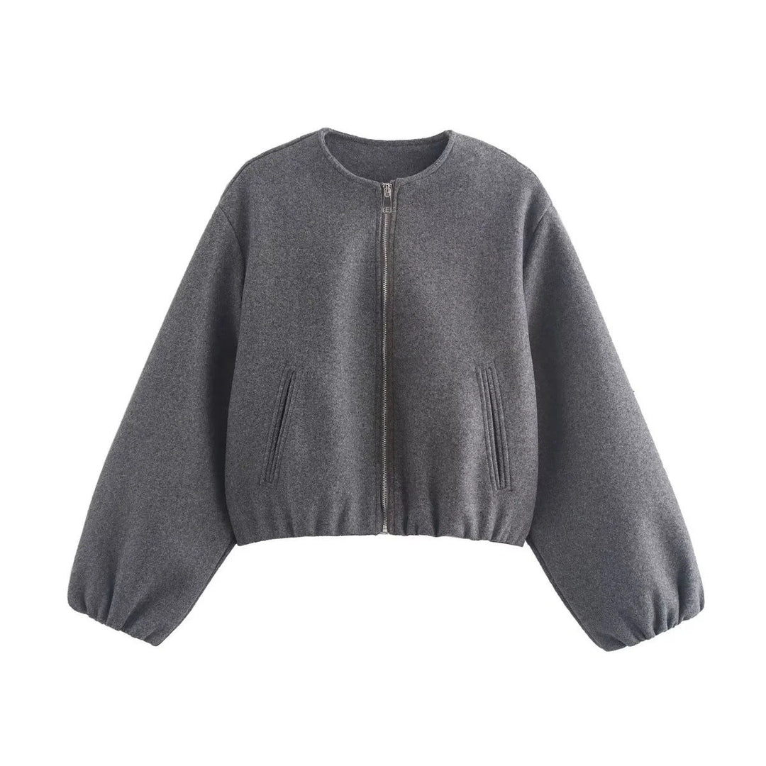 Damen Lockere Blousonjacke Aus Weichem Material Aliams