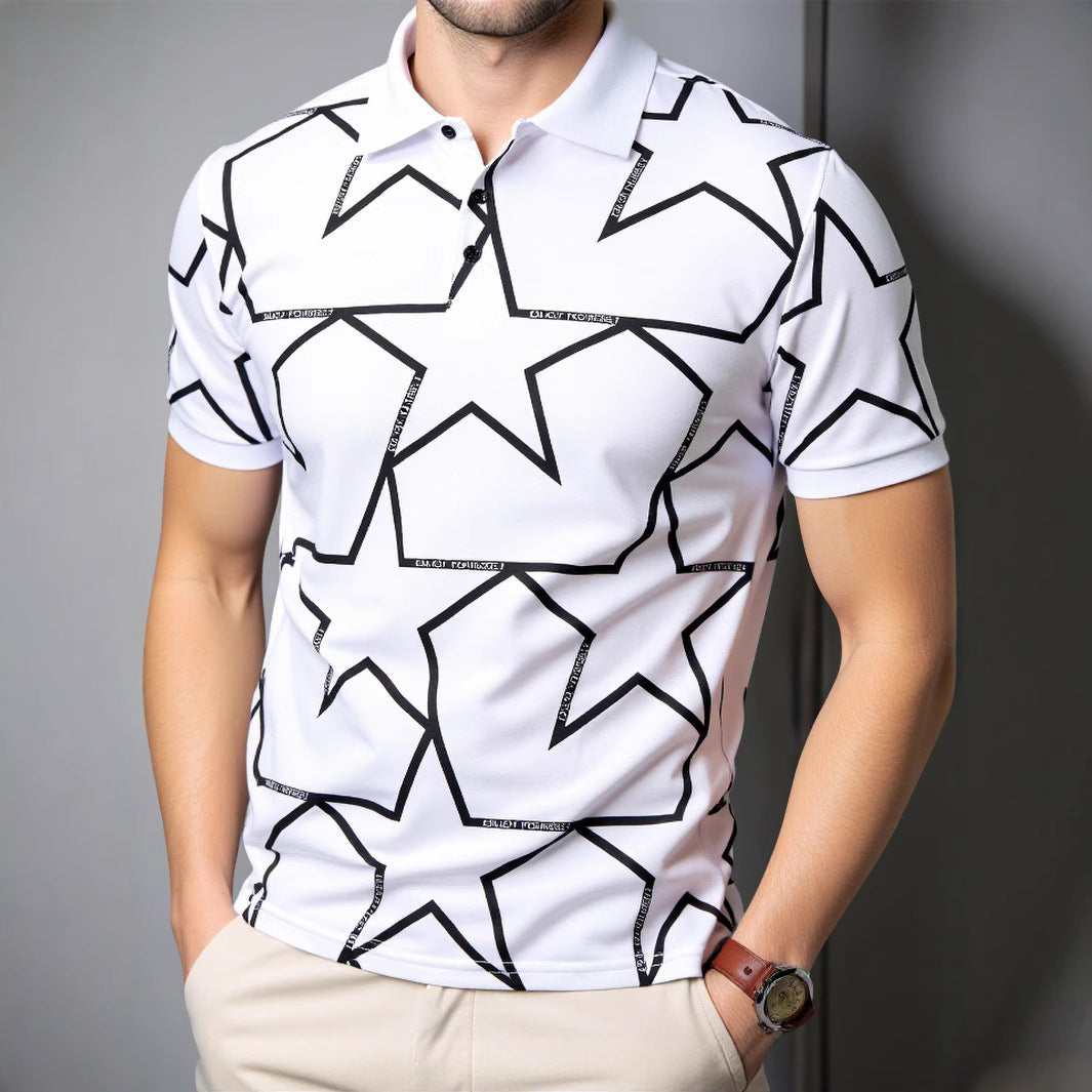 Herren Poloshirt mit modernem Sternen-Design und atmungsaktiven Materialien Aliams