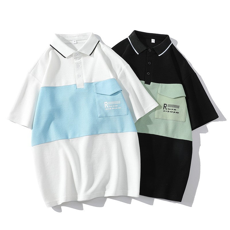 Herren Poloshirt mit modernem Stehkragen und asymmetrischem Farbdesign Aliams