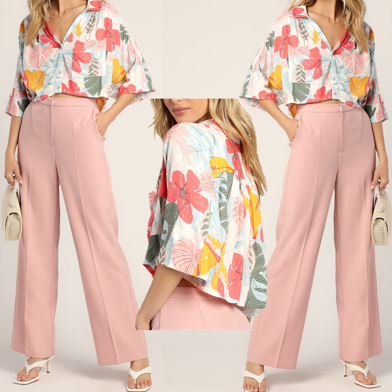Damen Elegante Sommerhose mit floralem Muster und lockerem Schnitt Aliams