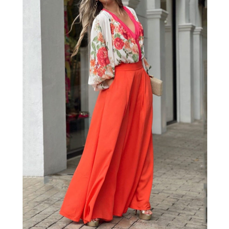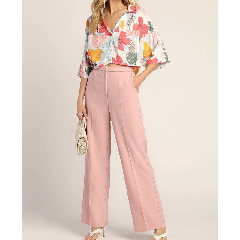 Damen Elegante Bluse mit weit geschnittenem Design und hoher Taille Hose Aliams