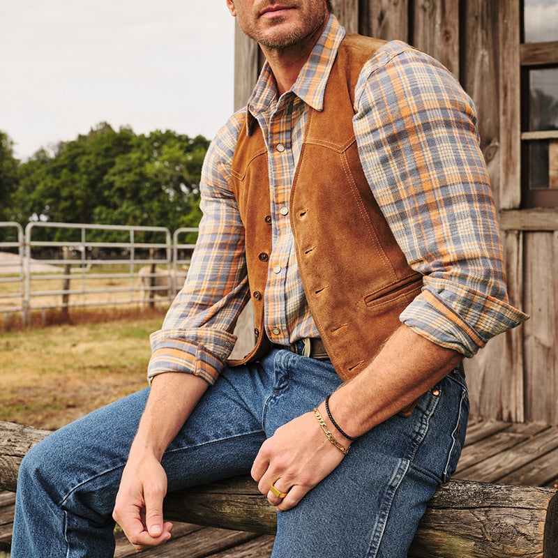 Herren Premium Wildlederweste mit funktionalen Taschen und klassischem Schnitt Aliams