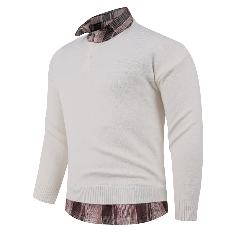 Herren Pullover mit integriertem Hemdkragen und Knopfdetails Aliams