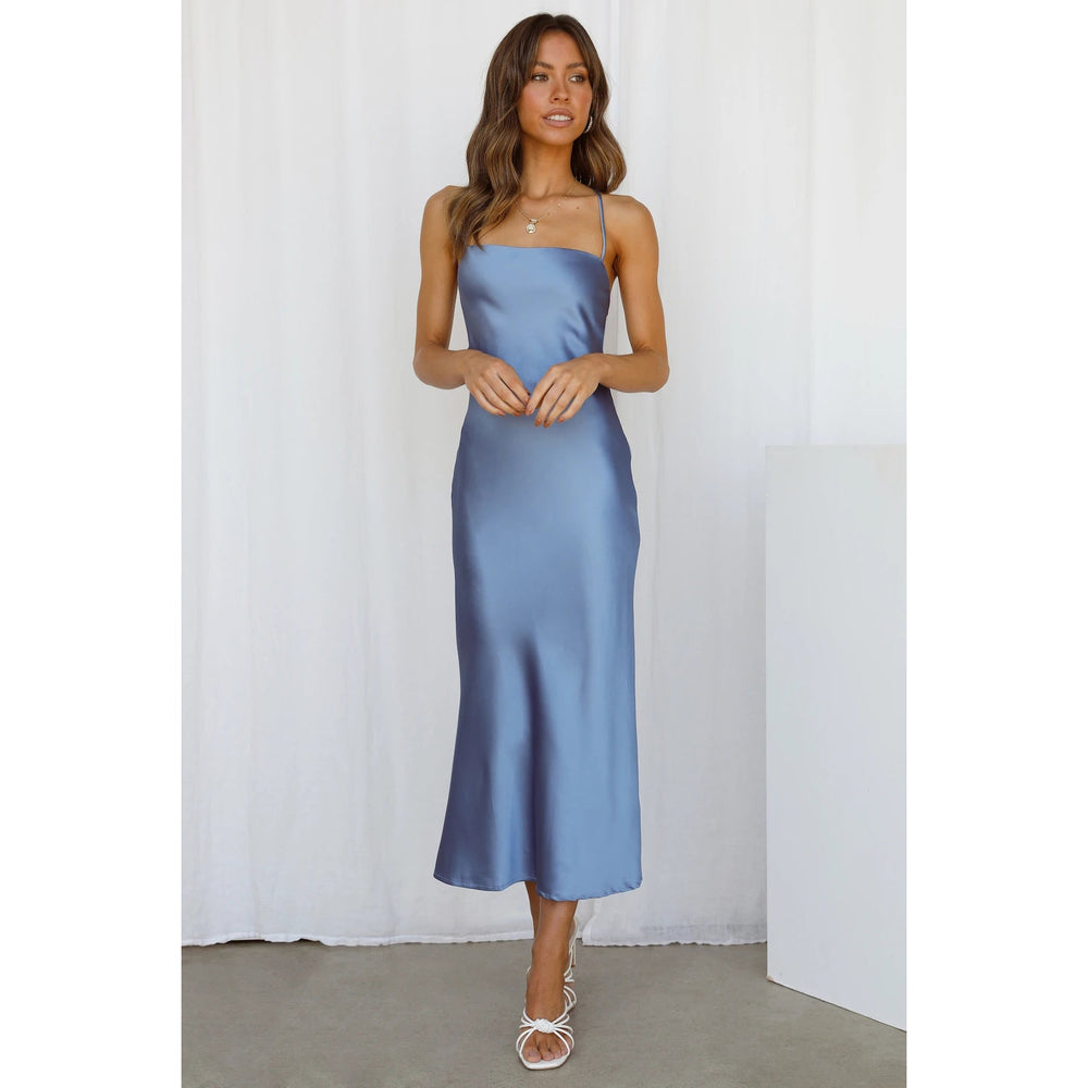 Damen Satinmaxikleid mit Schmalem Schnitt und Spaghettiträgern Aliams