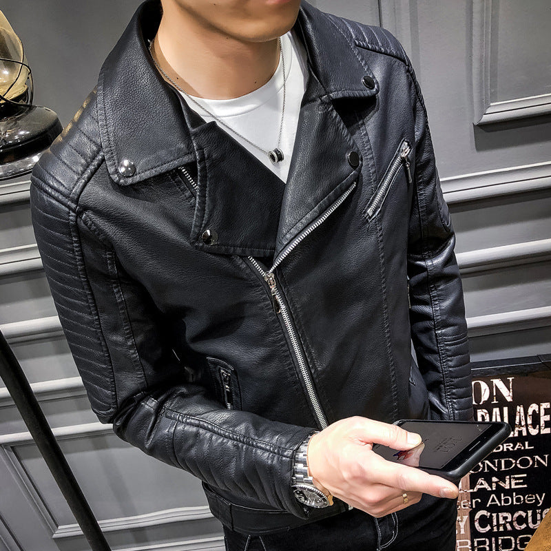 Herren robuste Lederjacke mit warmem Plüschkragen Aliams