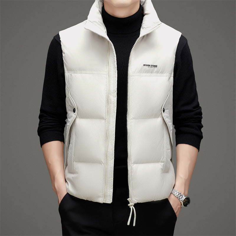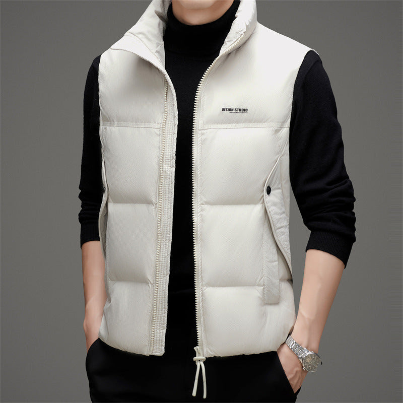 Herren samtige Steppweste mit hohem Kragen und praktischen Taschen Aliams
