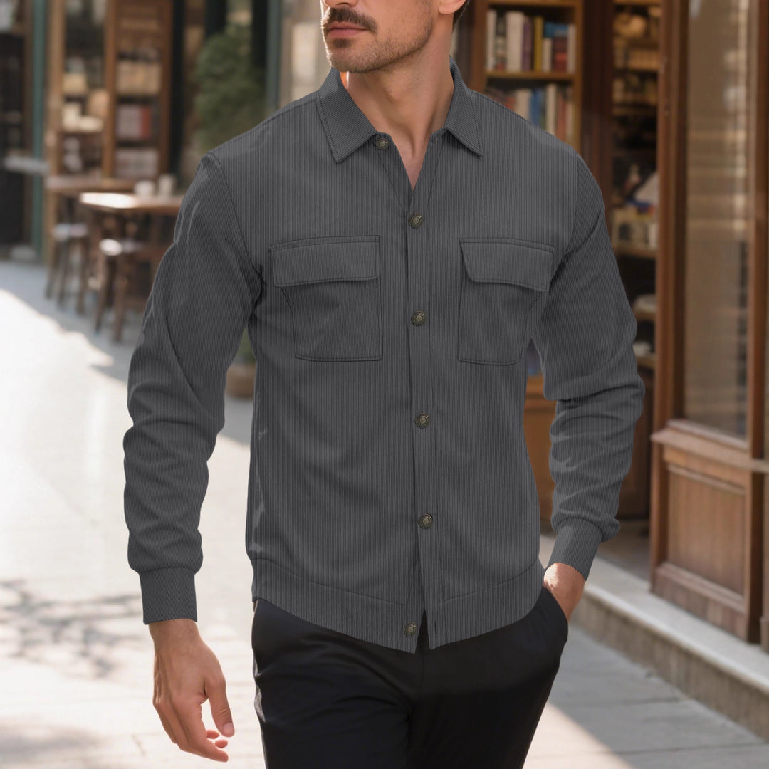 Herren strukturiertes Freizeithemd mit praktischen Taschen Aliams