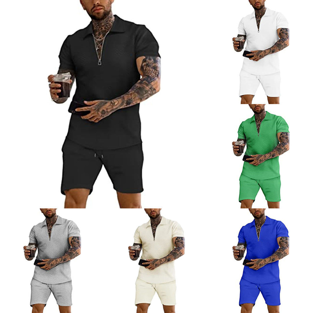 Herren Strukturierter Zip-Kragen Freizeitanzug Aliams